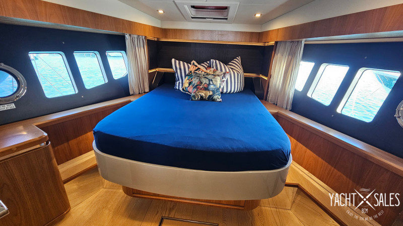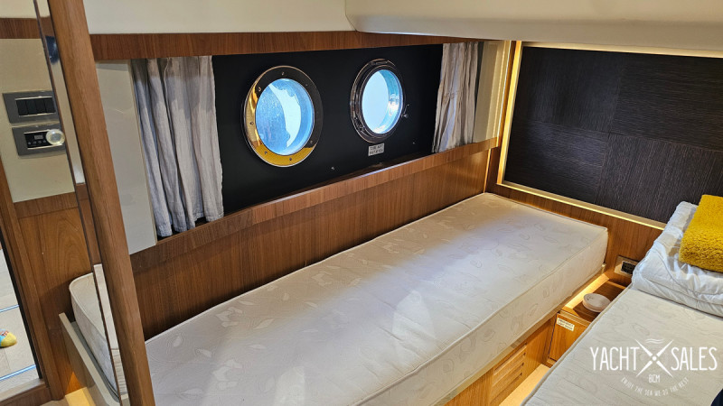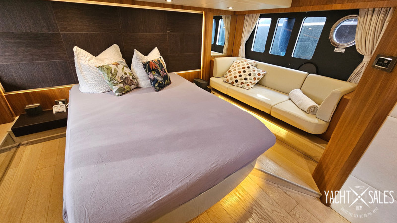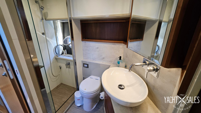 12 kW generator, air conditioning in all cabins including the crew cabin at the stern, hydraulic gangway, lowerable swim platform with 450 kg load capacity, satellite TV system with LED TV, ice maker, washer/dryer, dishwasher, stove/microwave, fridge-freezer combo, bow thruster, joystick steering, sink, grill, and refrigerator on the flybridge, sink on the swim platform, stainless steel anchor, electric anchor winch with chain counter, electric cockpit awning, bimini, flybridge cover, sunshades for saloon windows, cockpit camper cover, sliding door port side next to the helm station, blackout curtains for cabins, 1800 W inverter, shore power connection, and much more!!