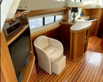 3-seat sofa with teak foldingtable on flybridge