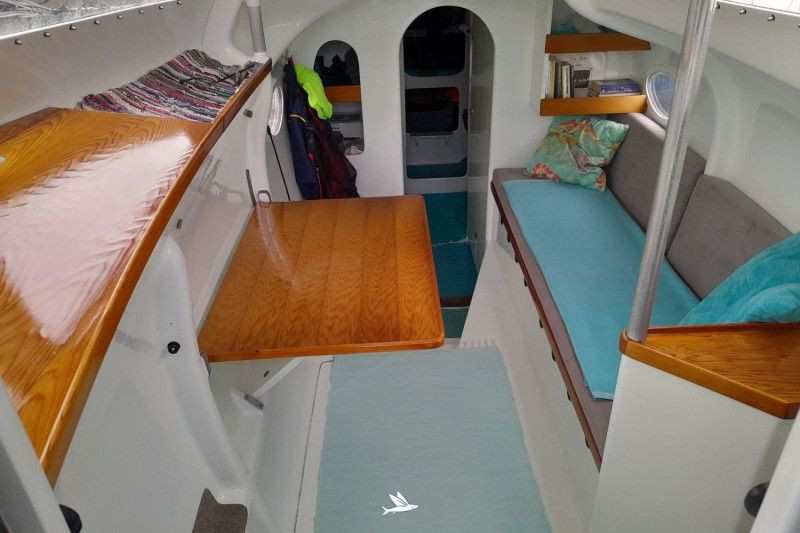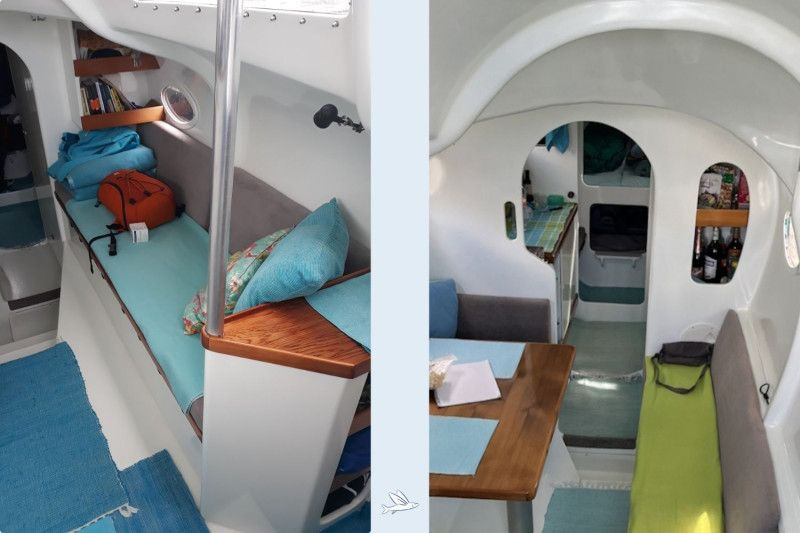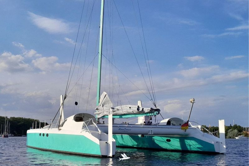 This exceptional Wavedancer One-Off performance catamaran was designed as a long-distance cruiser for fast and safe sea passages in autonomous operation, with excellent comfort below deck. Wavedancer is a sporty and fast catamaran that is also very easy to handle. The helm is neutral. This catamaran was built in Hamburg using a GRP-EPOXY-Divinycell sandwich construction, reinforced with carbon – a modern, stiff, and lightweight build with a rotating carbon mast, profiled daggerboards, boom, and bowsprit. The rotating wing mast optimizes wind flow to the mainsail. The trampolines between the hulls allow you to hover about 1.40 meters above the sea, remaining almost dry even in rough conditions. The rudder blades, as the daggerboards, are retractable, allowing for the discovery of shallow waters and anchoring in sheltered bays close to the shore. Wavedancer has just been modified with negative bows for even more buoyancy and performance. A recent refit has been completed. The catamaran is now ready for viewing and handover on the river Elbe in Hamburg-Wedel.