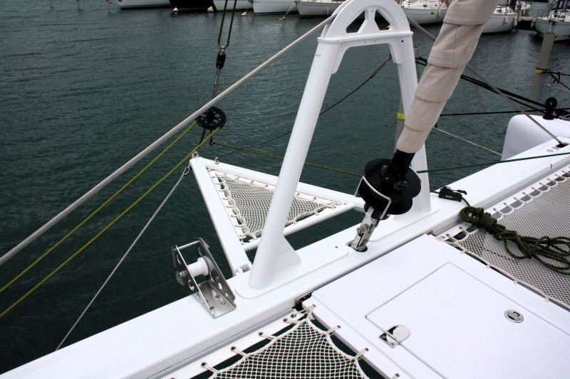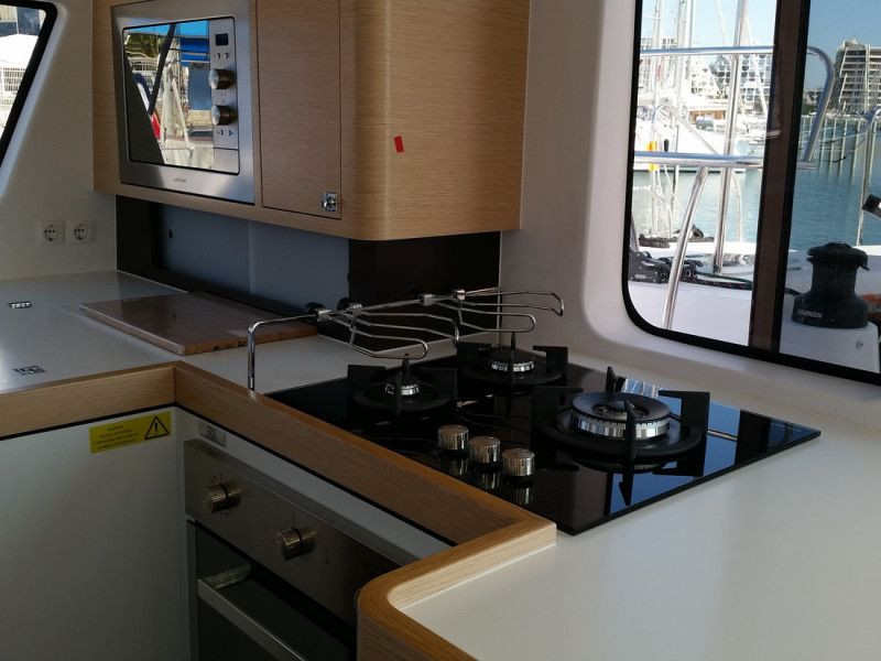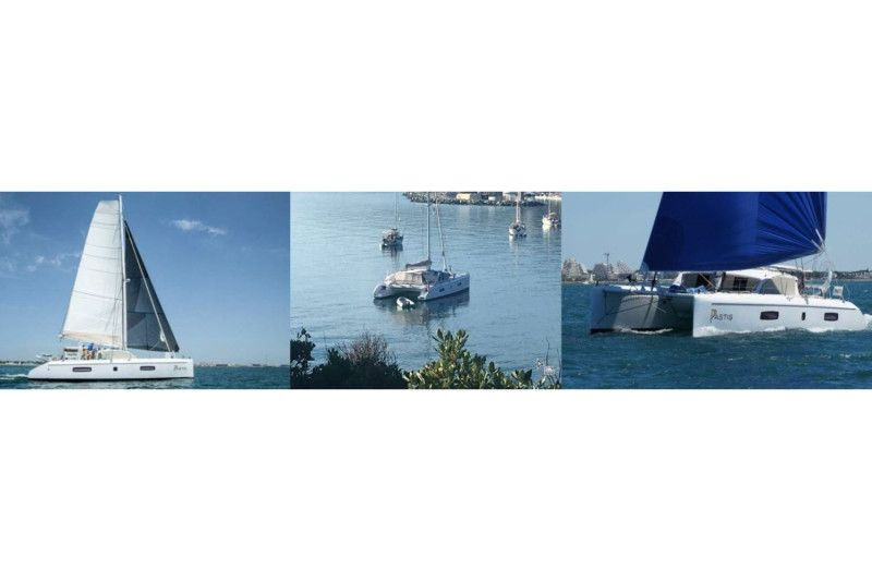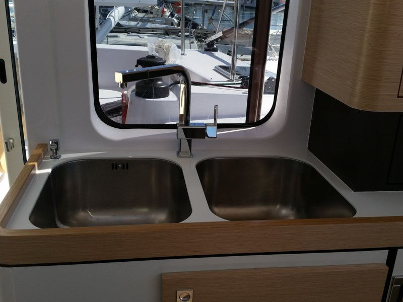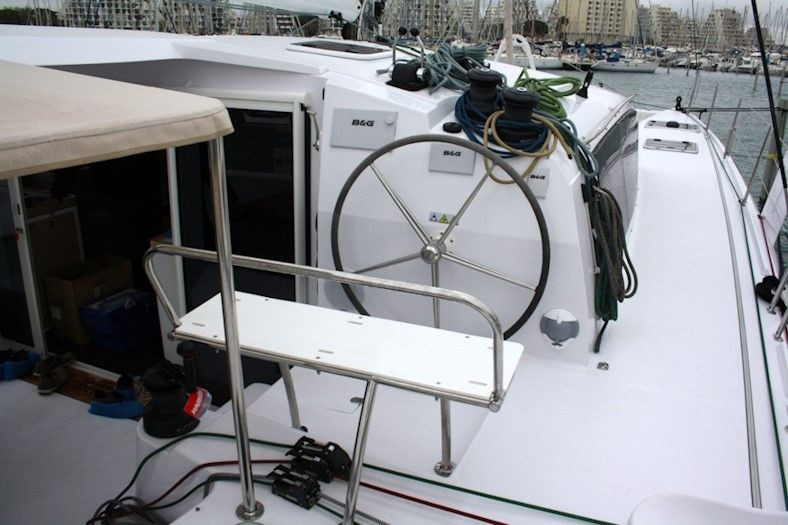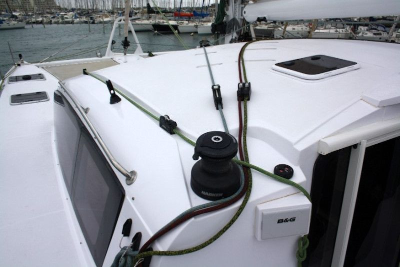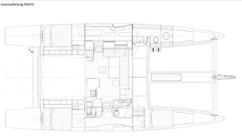 Ein robustes, neues Hardtop-Bimini bietet einen starren Mittelteil (Catwalk) für erhöhten Schutz und Stabilität, während die Seiten aus Canvas bestehen, was Flexibilität, bessere Sicht, weniger Gewicht, Bewegungsfreiheit und Wetterschutz ermöglicht. Dank ihrer schlanken Rümpfe und klaren Linien bietet sie außergewöhnliche Segelleistungen mit der perfekten Mischung aus Stabilität und Geschwindigkeit. Die Eignerversion mit drei Kabinen wurde ausschließlich in Europa vom ersten Besitzer gesegelt. Das Boot wurde regelmäßig direkt von der Werft gewartet, und notwendige Erneuerungen wurden stets durchgeführt. Es befindet sich in einem gepflegten Zustand, liegt aktuell in Frankreich und steht für Besichtigungen und zur Übernahme bereit.