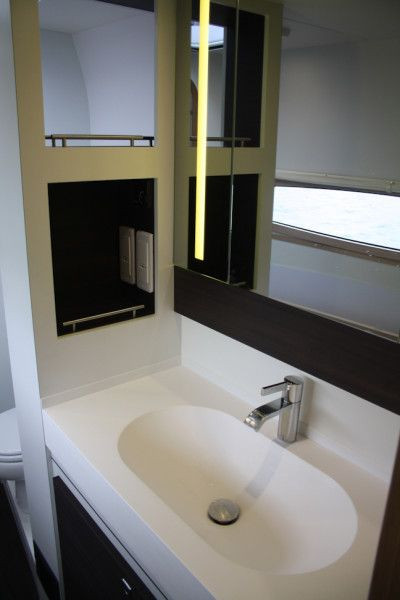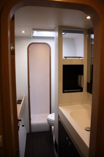 Achterkajüte, Bugkabine, Eignerkabine, Salon, WC Elektrisch + Waschbecken + Dusche