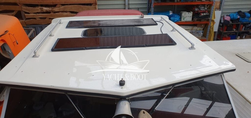 Ancora, Pompa di sentina elettrica, Verricello dell’ancora di prua, Collegamento alla terraferma 230 V, Impianto solare per caricare le batterie, Inverter, Battery
