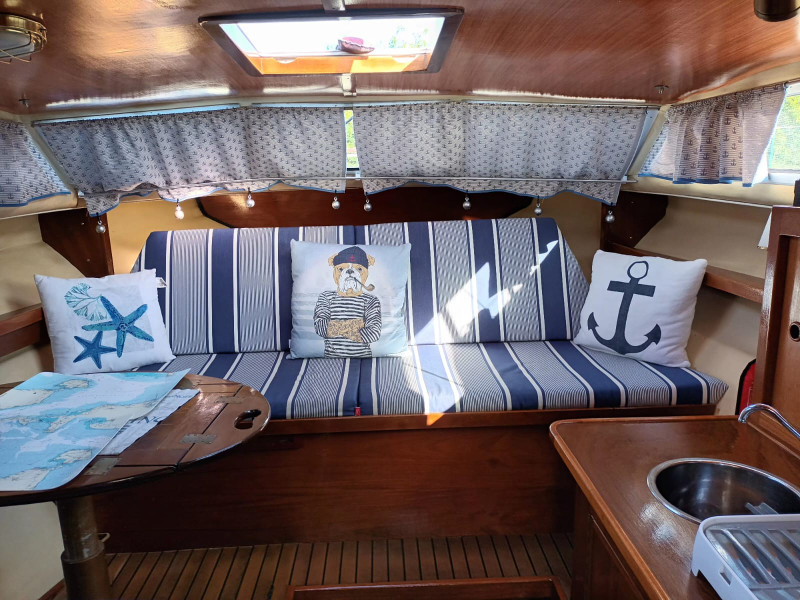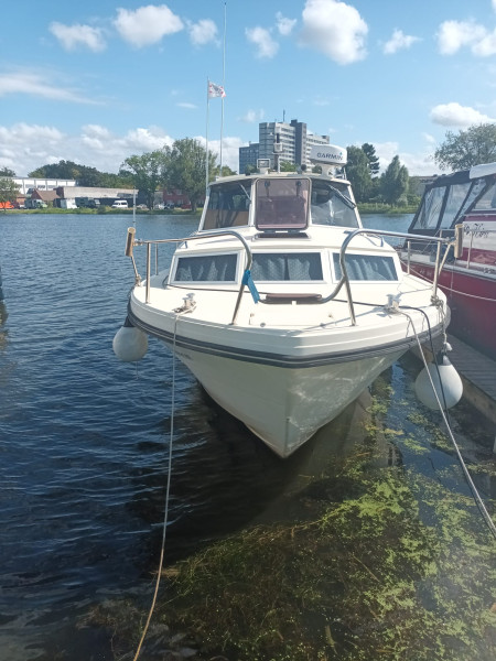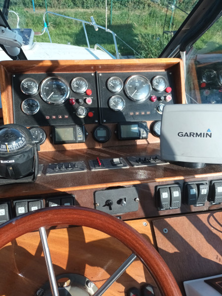 Owner\'s cabin, interior helm, wooden floor in the cabin and cockpit, cool box, compressor refrigerator, sink, 2-burner spirit stove, 12 and 220V sockets, hand anchor winch with anchor and chain, 220V shore power connection with car charger, several bilge pumps, electric bow lights, FI switch, windscreen wipers with washer system, bathing ladder, bathing platform, davits with dinghy, colour TV with antenna, stern shower, hot air heating, radio, trailer, trim tabs, GPS chart plotter, radar, fish finder, VHF radio, compass, weather fax, weather radio station, bilge alarm, fire extinguisher, lighting, life raft, lifebuoy, life jacket, guard rail, bimini top, underwater paint, winter storage trailer, and much more!!!