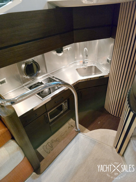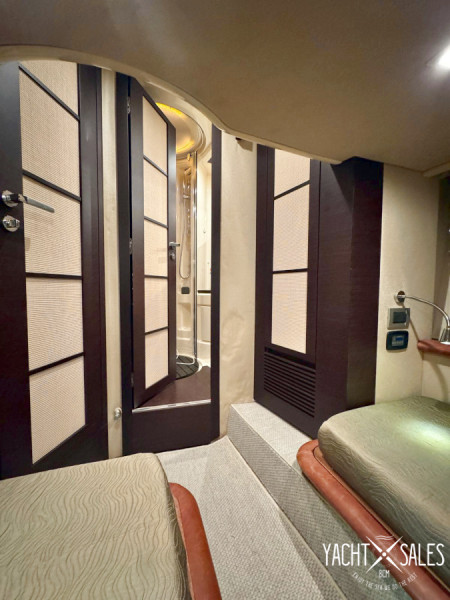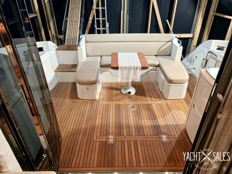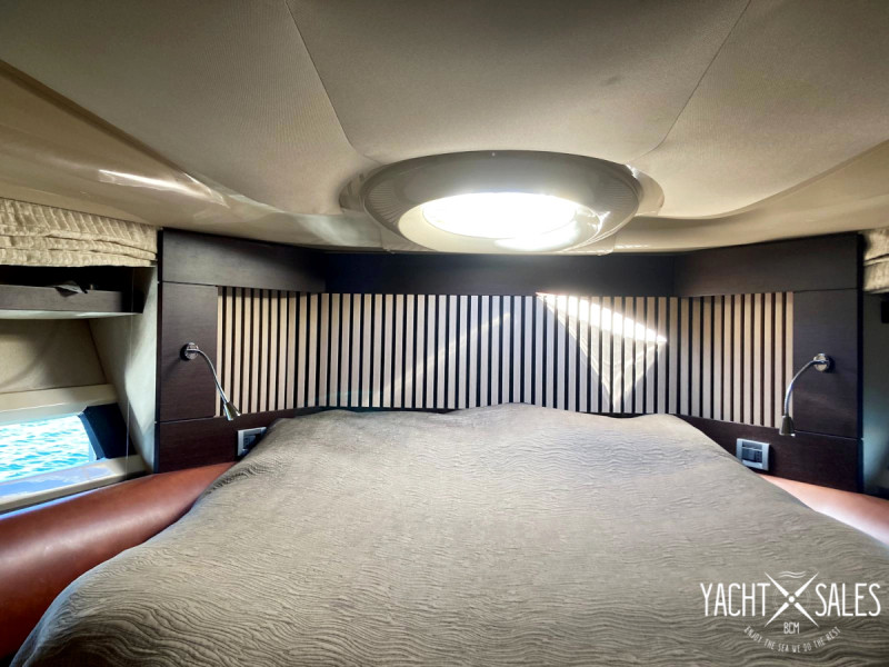 Price: 280.000 EUR (VAT paid) Description: Are you looking for a modern premium hardtop with a closed cabin in the size 40 – 45 feet in price class 250.000 - 300.000 EUR? Don't miss this very nice Azimut 43S 2007 with Volvo Penta IPS-500 drivelines with joystick control plus bow thruster for easy maneuvering of the boat in port. This beautiful Italian premium hardtop with large express side window in the hull, large electric opening sunroof, large inviting aft deck and hydraulic lowering aft bathing platform has an impressive exterior finish that must be experienced! Even the nice interior in walnut veneer and the hard-wearing fabric upholstery on sofas as well as all floor mats are in very good condition! This Azimut 43S with low running hours, which has had the same owner for 10 years, is a very strong competitor to the English hardtop boats such as Princess V42 and V45 of later yearmodels. Compared to these popular Princess hardtops, the Azimut 43S appears to be more affordable as, unlike the Princess V42 and V45, it has a closed cabin and hydraulic lowering bathing platform. In addition, a more modern hull with large express side windows and, of course, Volvo Penta's modern IPS drive lines instead of the usual drives that the Princess V42 and V45 has. Several nice pluses with the Azimut 43S are its wide side decks and large front deck with a large sun deck with comfortable sun cushions with raised headrests. The large aft deck which is well protected by the boat's deep canopy roof with recessed LED spot lighting plus an electric sun awning, offers a nice U-shaped sofa group with a folding table for 4 persons and in front of the table 2 folding chairs can be placed so you can sit 6 people at the table. The U-sofa can also be easily converted into a large sunbed during the warm sunny days of summer. The Aft deck also offer a storage and shelving furniture with an electric oven towards the salon. The floor plan inside the inviting salon with large modern side windows that let in lots of light, the big kitchen is directly adjacent to the salon. The comfortable sofas in the salon, where the large L-shaped sofa with extra seat can be converted into an extra double bed, offer seating for 8 persons and in the front of the boat's wheelhouse, from where you as the skipper have a very good view when you maneuver the boat, there is a large 2-seater captain's sofa and openable side window. Two steps down from the saloon is the boat's large, exclusive, well-equipped kitchen with worktop and inner wall in stainless steel and recessed LED spot lighting. The boat's spacious, pleasant guest cabin starboard midships has single beds and a large express side window, a wardrobe and its own entrance to the boat's guest bathroom with vacuum-flush toilet and separate shower cabin, which also has an entrance from the hall in front of the kitchen. In the bow is the boat's large, inviting Master cabin with a large double bed, large express side windows, double wardrobes and a private bathroom with a vacuum-flush toilet and a separate shower cubicle. In terms of equipment, this Azimut 43S also offers a nice newly overhauled aft canopy with new windows that close the entire aft deck of the boat, a powerful 9kW generator, air conditioning with double units with good cooling and heating in the boat's salon and cabins, defroster in the wheelhouse and hydraulic gangway with automatically folding railing in the stern, etc. The boat that can be viewed indoors in a boat storage hall in Malmö and Is sold fully season-ready with guarantee that its powertrains and all the boat's significant systems are functional at the time of the boat's sale and delivery. We offer delivery of the boat throughout Europe. Ask us for a quote on transporting the boat to your home port. Maintenance: The boat is continuously maintained & winter stored fully winter preserved indoors in boat storage hall. New engine & drive service spring 2026. New polishing & waxing of the whole boat and replacement of worn zinc anodes to new ones spring 2026. New treatment of all teak decks spring 2026. Latest antifouling spring 2025. Zinc anodes and glycol in engines changed 2025. Generator service (change of oil & filter) autumn 2023. Engines charge air coolers, oil coolers & heat exchangers shared & cleaned in 2022. Drives repackaged with new propeller shafts & slat packs in 2017. Specification: Year: 2007 Country of origin: Italy Location: Malmo/south west of Sweden CE class: B/Max 10 persons Color: White/beige Previous owners: 2 Length: 13.37m Width: 4.22m Depth: 1.15m Weight: 15.500kgs Fuel: 1100l Fresh water tank: 500l Septic tank: 132l Cabins: 2 Sleeps: 4+2 Seats: 6+10 Toilet/Shower: 2/3 Engine: 2x Volvo Penta IPS-500 Number of hp: 2x370 Running time: 768h Operation: Volvo Penta IPS-500 Cooling: Fresh water Cruising speed: 24kn Maximum speed: 30kn Fuel consumption: Approx. 3,5l/nm in cruise Equipment: Interior: Walnut veneer Manuals & documentation Wide side decks Grab bars on the sides of the cabin roof - For safe movement on deck Solid steps from the side decks down to the aft deck Large teak package with teak on all decks (all teak in top condition) Aft canopy (color taupe) with new windows 2025-2026 (good condition) Electric sun awning for aft deck Silvertex cushions (colour taupe) on aft deck 2015 Sun pads Silvertex (colour taupe) with raised headrests on foredeck 2015 Windshield cover (color beige) Large electrically opening sunroof in cabin roof Hydraulic lowering bathing platform with built-in bathing ladder & LED deck lighting Shower with hot & cold water by the bathing platform New plexiglass for door to aft deck 2026 Hydraulic gangway with automatically folding railing in the stern - Remote controlled + Remote control Generator Kohler 9kW Air conditioning reversing cooling/heating (2 units) in salon & cabins Defroster heating in wheelhouse Water heater with hot water from engine while running Septic tank with discharge overboard & via dec