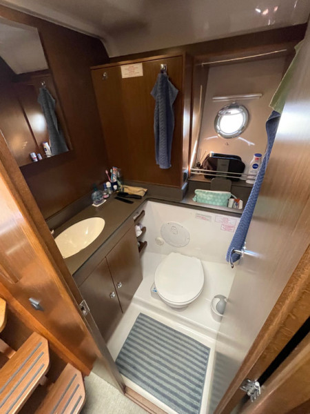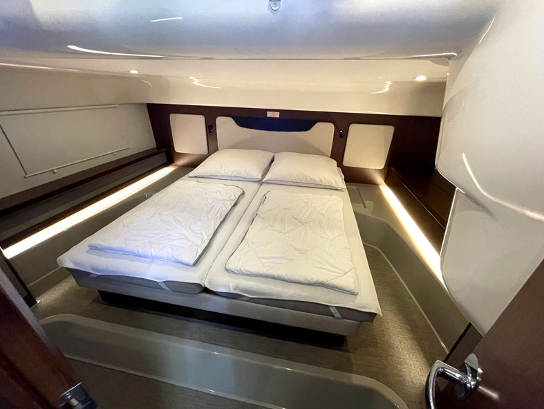 Ankerketting, Zwemtrap, Zwemplatform, Boegschroef, Dekluik, Stootwillen, Voorruitverluchting, Hekdouche warm/koud, Stern thruster, Verwarming, Radio, Zonnekussens op het voordek, TV antenne, Warmwaterinstallatie