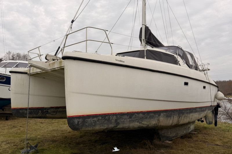 The Broadblue 345 is an ideal catamaran for families and couples. This model is small enough to make a passage through the French canals, but absolutely seaworthy and robust to carry a Category A (Ocean) status, all with 2m headroom throughout the boat. A beautifully crafted catamaran, whose predecessors have sailed all over the World. The first and current private German owner, sailed this sound cruising-cat in North- and Baltic-sea during the summer seasons until 2025. The owner kept his cat permanently professionally maintained and upgraded this most renowned design. Ready to set sails with polished hulls, this excellent coastal and offshore cruising catamaran, might be inspected at the yard near Wilhelmshaven/Northsea. For any additional, specific detail, please contact cat sale at: info@cat-sale.de