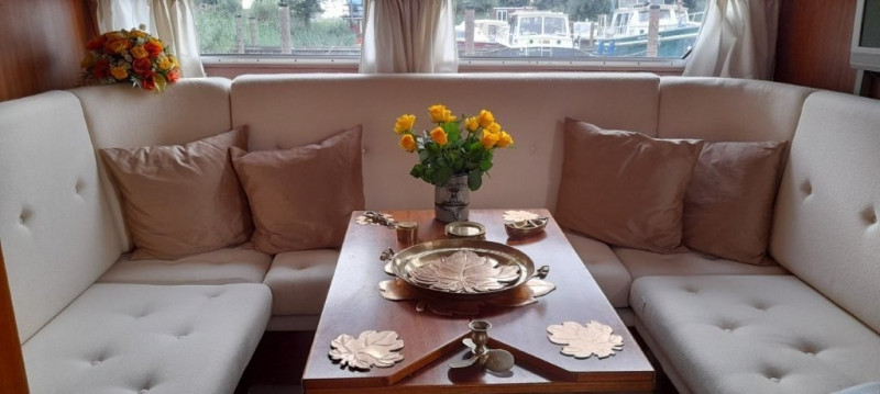 Akterkabin, Rederlugar, Salong, Teak på badeplattform, Teak i cockpit