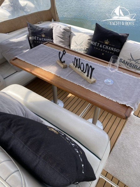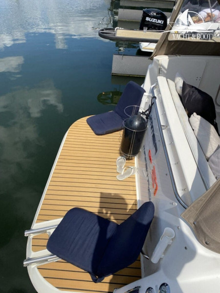 Badestige, Badeplattform, Cockpitbord, Dekkdusj, Trykkvann, Radio, Solputer på fordekk, Trimplan el./hydr., Vamtvannsanlegg, Speaker