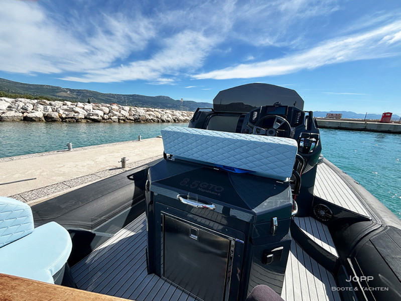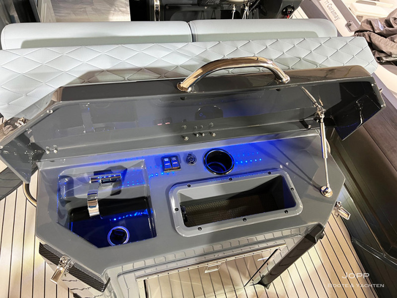 Badestige, Badeplattform, Cockpitservant, Dekksluke, Hekkdusj, Radio, Solputer på fordekk, Tilhenger, Vamtvannsanlegg, Wetbar