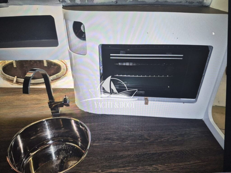 Drabinka, Platforma kapielowa, Stól na kokpicie, Prysznic pokladowy cieply/zimny, Urzadzenie wody pod cisnieniem, Radio, Obicia przeciwsloneczne na pokladzie dziobowym, Klapki wywazajace, Urzadzenie cieplej wody, Speaker