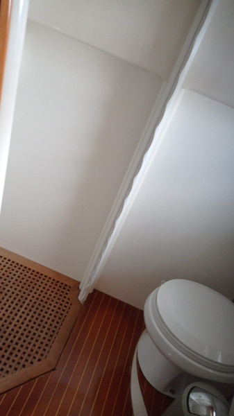 Teak flooring in cockpit, cabins and bathing platform