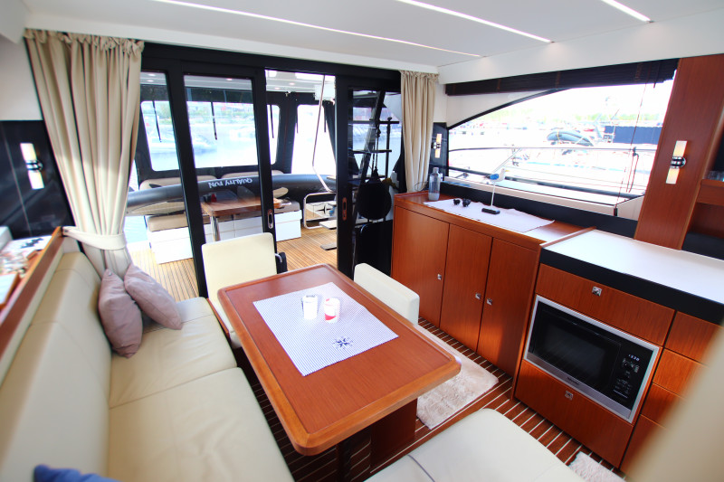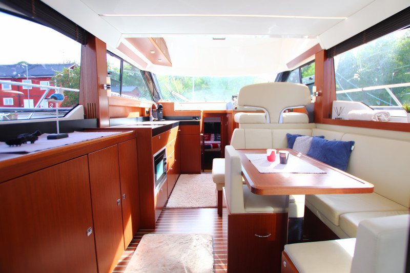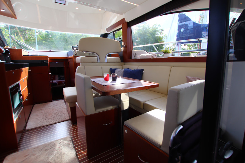 Upholstery – Inside: Leatherette Beige. Aft deck and Flybridge: Suntex Dove