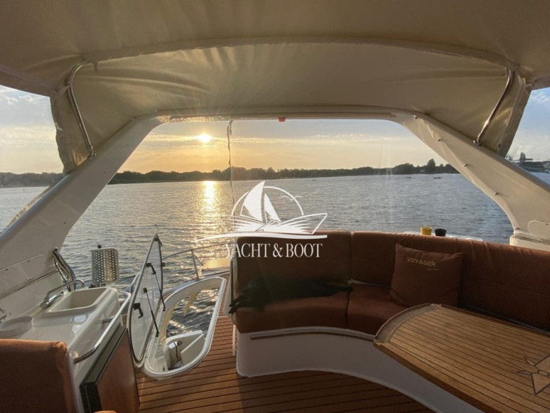 Escada de banho, Plataforma de banho, Grua de barcos, Leitor de CD, Mesa de cockpit, Chuveiro do convés quente / frio, Instalação de pressão hidráulica, Leitor de DVD, TV, Passagem, Rádio, Almofada de sol na proa, Reboque tandem, Estabilizadores el./hidr., Antena de TV, Equipamento de água morna, Speaker