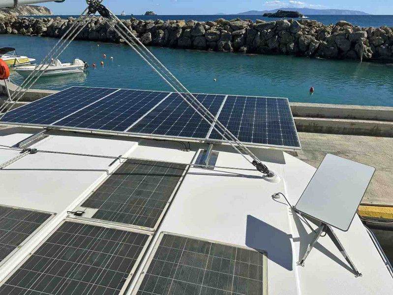 Âncora, Carregador de bateria, Molinete de proa, Compartimento de lavagem do convés, Gerador, Conexão à terra a 230 volts, Equipamento solar para carregar a bateria, Inverter, Battery