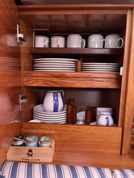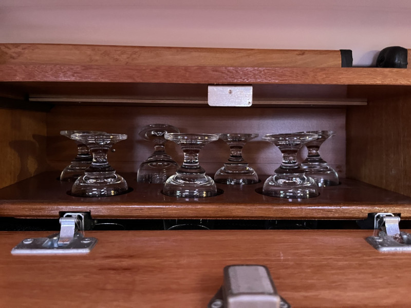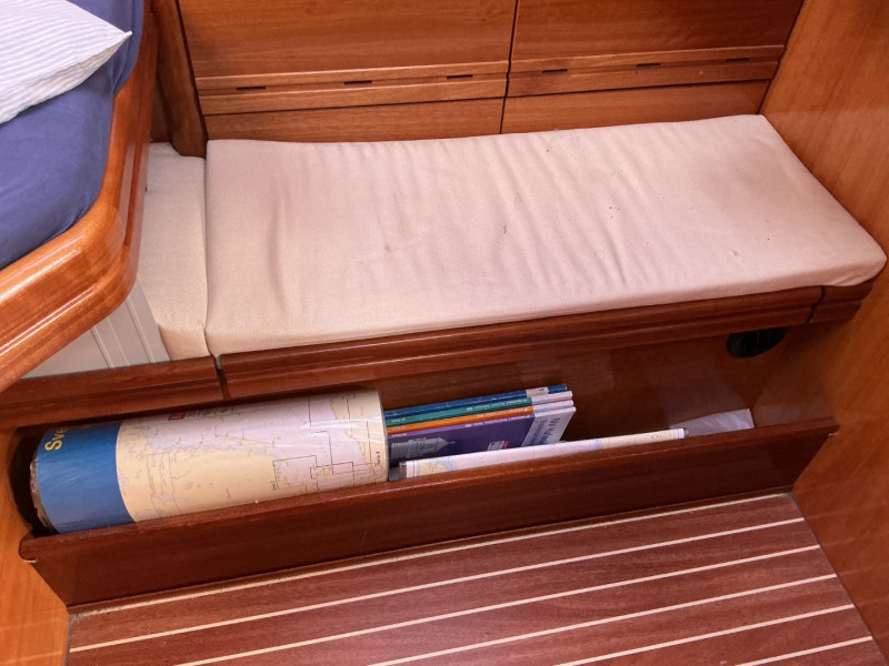 лестница для купания, площадка для купания, стол в кокпите, душ на палубе, радио, покрытие средством от биологического обрастания корпуса