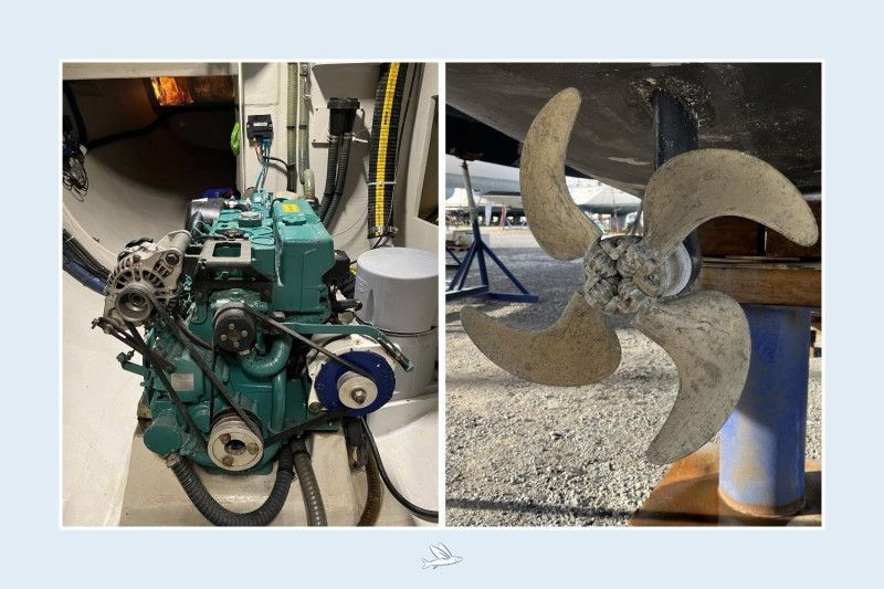 Anchor chain, Water maker, Swimming ladder, Tender, Bow thruster, Cockpit cushions, Cockpit table, Davits, Deck shower hot/cold, Deck hatch, Pressure washer, Fender, Mooring line, Gangway, Heating, Speaker, Radio, Septic tank, Sunbeds, Anti-fouling, Water heater, Boiler, Washing machine, Mains water supply, other extras
