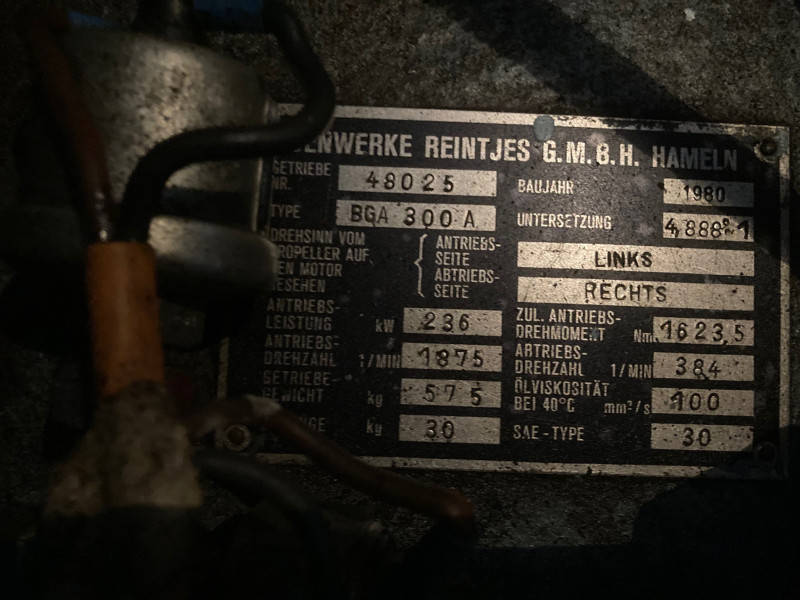 Reintjes reversing gearbox, type BGA 300 A, year of construction 1980