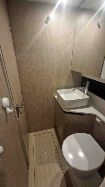 Achterkajüte, Bugkabine, Eignerkabine, Salon, WC Elektrisch + Waschbecken + Dusche