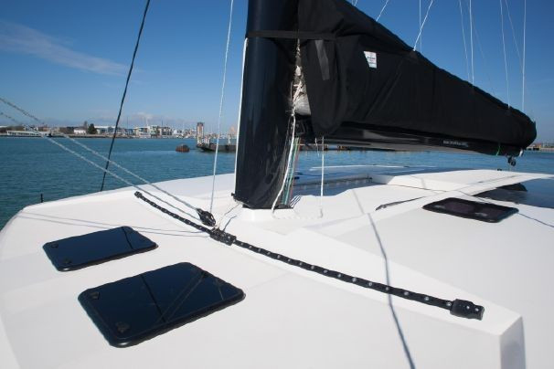Ocean cruising performance cat by Darren Newton. The Rapier 550 represents the new generation of the most innovative and elegant performance catamarans with a true racing heritage. Intelligent electronics, navigation and radically simple sail handling are standard, as are creative contemporary, luxury interiors. Carbon fibre infused epoxy, making it a fast, light and extremely good-looking boat. With a cruising speed of 15 knots, this boat has the capability of covering 350 miles per day. This Rapier 550 has been enjoyed by her first owner, an experienced Australian family, who are embracing the nomadic sailing life. They crossed the Atlantic from Cape Verde to Barbados with the ARC+ and were the first catamaran home with young children aboard and the eighth catamaran overall. They have invested heavily in the boat with lots of new equipment including 800Ah of Victron-Lithium, new solar arch bringing the total solar array to 2kW, Watt&Sea generator, Raymarine Axiom plotters, Starlink together with new standing rigging etc. €250k of upgrades and updates. After a splendid Caribbean cruise, she is now back in England. All maintenance work done, safety equipment updated, cleaned and polished to be handed over to her second proud owner now. She is still available to order, depending on the factory order book timescale. Likely budget €2.5-€3m and 2 years.
