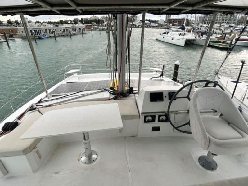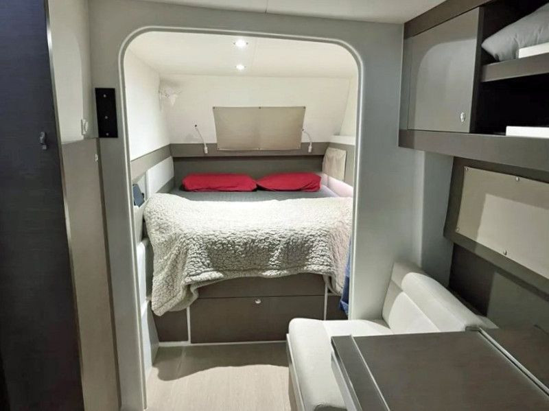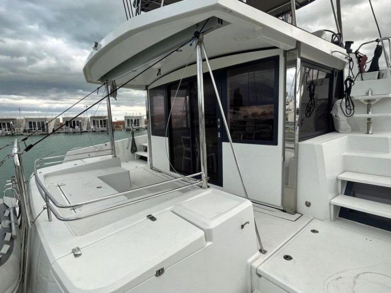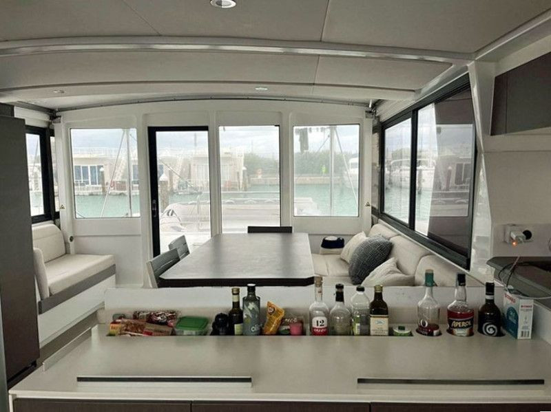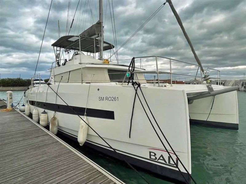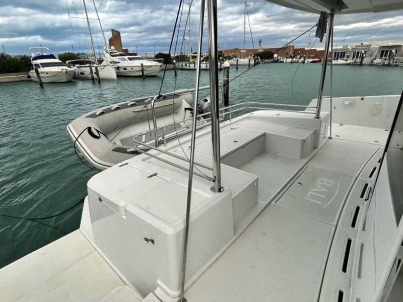 The 4.3 was launched shortly after the 4.5. - The Bali 4.3 Design delivers the maximum useable living space per square metre with a superb forward cockpit lounge, flybridge, open aft cockpit/salon, large cabins with island berths, US-style fridge. The main deck layout is most innovative with a huge “garage door” swinging up to the roof of the cabin either electrically or manually which gives you a huge open space for entertaining. Comfort equipment with full sized fridge and freezer, dining area, lounge area, navigation-station and large galley. If the weather turns, or you feel like more privacy, just swing the big door down and you have a fully enclosed salon. The foredeck is solid and offers even more lounging space in a forward cockpit, that you normally expect to see on 50'+ catamarans. Plenty of working space for light wind sails and exceptional deck-rigidity in a very stiff structure, with plenty of buoyancy forward. The forward part of the salon is all windows: the big central window opens right up so you can pass cool drinks out to anyone lounging in the forward cockpit area. The perfect cruising design for either charter- or private use. Available for your viewing and to be handed over to already enjoy the 2024 sailing season in Italy now.
