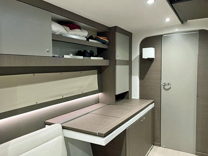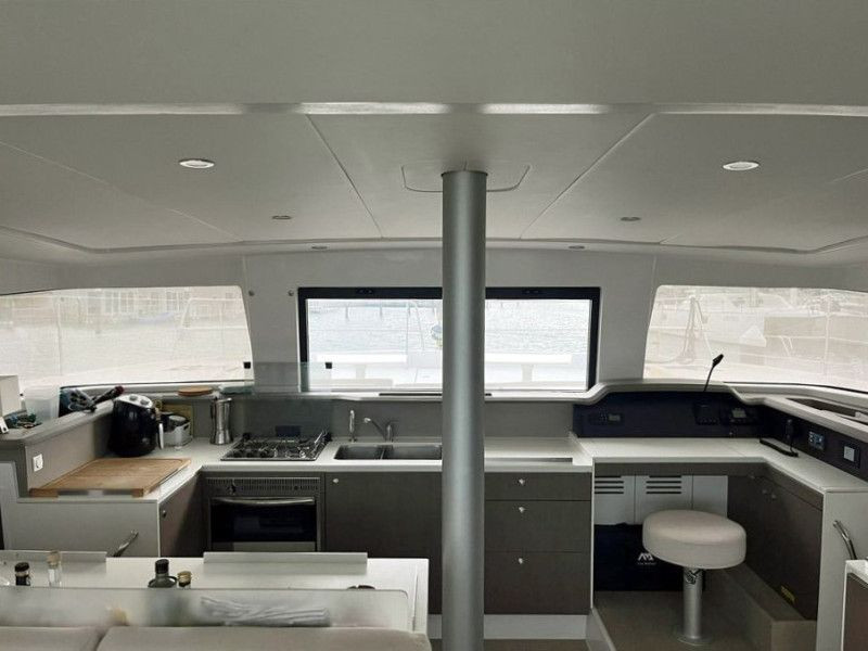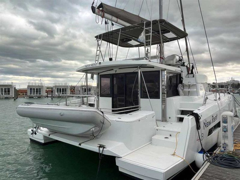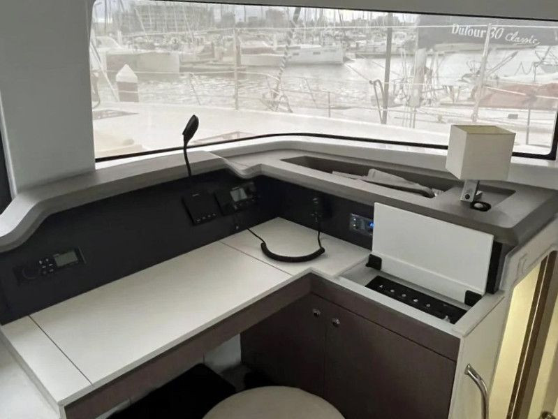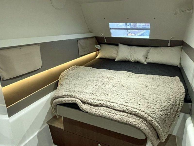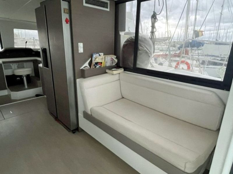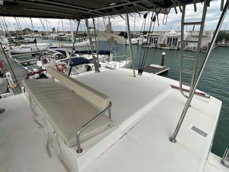 The 4.3 was launched shortly after the 4.5. - The Bali 4.3 Design delivers the maximum useable living space per square metre with a superb forward cockpit lounge, flybridge, open aft cockpit/salon, large cabins with island berths, US-style fridge. The main deck layout is most innovative with a huge “garage door” swinging up to the roof of the cabin either electrically or manually which gives you a huge open space for entertaining. Comfort equipment with full sized fridge and freezer, dining area, lounge area, navigation-station and large galley. If the weather turns, or you feel like more privacy, just swing the big door down and you have a fully enclosed salon. The foredeck is solid and offers even more lounging space in a forward cockpit, that you normally expect to see on 50'+ catamarans. Plenty of working space for light wind sails and exceptional deck-rigidity in a very stiff structure, with plenty of buoyancy forward. The forward part of the salon is all windows: the big central window opens right up so you can pass cool drinks out to anyone lounging in the forward cockpit area. The perfect cruising design for either charter- or private use. Available for your viewing and to be handed over to already enjoy the 2024 sailing season in Italy now.
